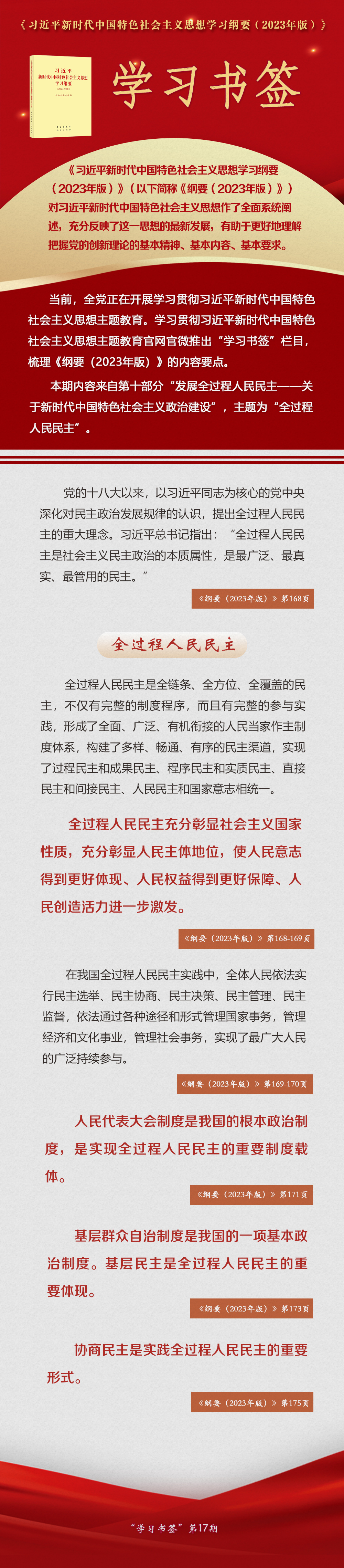 《習(xí)近平新時(shí)代中國(guó)特色社會(huì)主義思想學(xué)習(xí)綱要(2023年版)》 學(xué)習(xí)書簽丨全過程人民民主